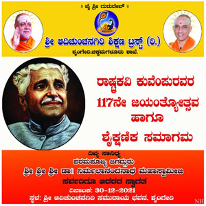 ಶ್ರೀ ಆದಿಚುಂಚನಗಿರಿ ಶಿಕ್ಷಣ ಟ್ರಸ್ಟ್ (ರಿ) ಶೃಂಗೇರಿ. ಯಲ್ಲಿ ಜಗದಕವಿ,ಯುಗದಕವಿ,ರಾಷ್ಟ್ರ ಕವಿ ಡಾ.ಕುವೆಂಪು ರವರ ೧೧೭ ನೇ ಜನ್ಮದಿನೋತ್ಸವ ಆಚರಣಾಕಾರ್ಯಕ್ರಮವನ್ನು ಪರಮಪೂಜ್ಯ ಜಗದ್ಗುರು ಶ್ರೀ ಶ್ರೀ ಶ್ರೀ ಡಾ.ನಿರ್ಮಲಾನಂದನಾಥ ಮಹಾಸ್ವಾಮೀಜಿಗಳ ದಿವ್ಯಸಾನಿದ್ಯದಲ್ಲಿ ಆಚರಿಸಲಾಯಿತು ಈ ಕಾರ್ಯಕ್ರಮದಲ್ಲಿ ಶ್ರೀ ಆದಿಚುಂಚನಗಿರಿ ಶಿಕ್ಷಣ ಟ್ರಸ್ಟ್ (ರಿ) ನ ಪ್ರಧಾನ ಕಾರ್ಯದರ್ಶಿಗಳಾದ ಪರಮಪೂಜ್ಯ ಶ್ರೀ ಶ್ರೀ ಪುರುಷೋತ್ತಮನಂದನಾಥ ಮಹಾಸ್ವಾಮೀಜಿ,ಹಾಸನ ಶಾಖೆಯ ಕಾರ್ಯದರ್ಶಿಗಳಾದ ಪೂಜ್ಯ ಶ್ರೀ ಶ್ರೀ ಶಂಭುನಾಥಸ್ವಾಮೀಜಿ,ಚಿಕ್ಕಮಗಳೂರು ಶಾಖೆಯ ಪೂಜ್ಯ ಶ್ರೀ ಶ್ರೀ ಗುಣನಾಥಸ್ವಾಮೀಜಿಗಳು, ಶೃಂಗೇರಿ ಕ್ಷೇತ್ರದ ಶಾಸಕರಾದ ಶ್ರೀ ಟಿ.ಡಿ ರಾಜೇಗೌಡರು ಉಪಸ್ಥಿತರಿದ್ದರು.